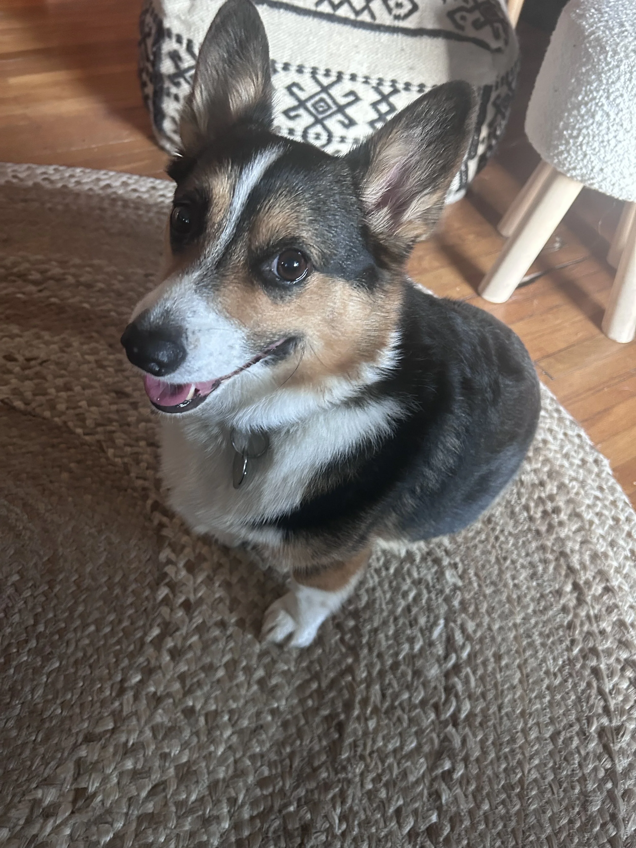 I share my “studio” with a very opinionated corgi who critiques all my work with a single side-eye.